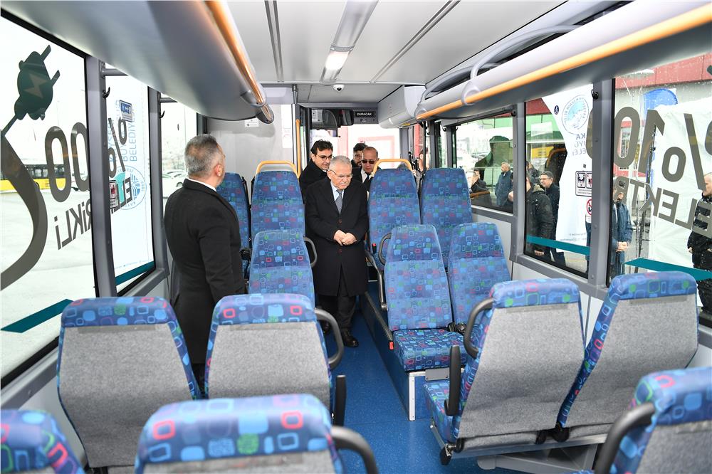 Kayseri Büyükşehir Belediye Başkanı Dr. Memduh Büyükkılıç, Büyükşehir bünyesindeki temiz enerjiyle, konforlu ve erişilebilir ulaşım için çalışmalarını sürdüren Ulaşım A.Ş.’de, otobüs filosuna katılan yüzde 100 elektrikli, sessiz ve sıfır emisyonlu yeni otobüs ve elektrikli bisikletleri inceleyerek bilgi aldı.